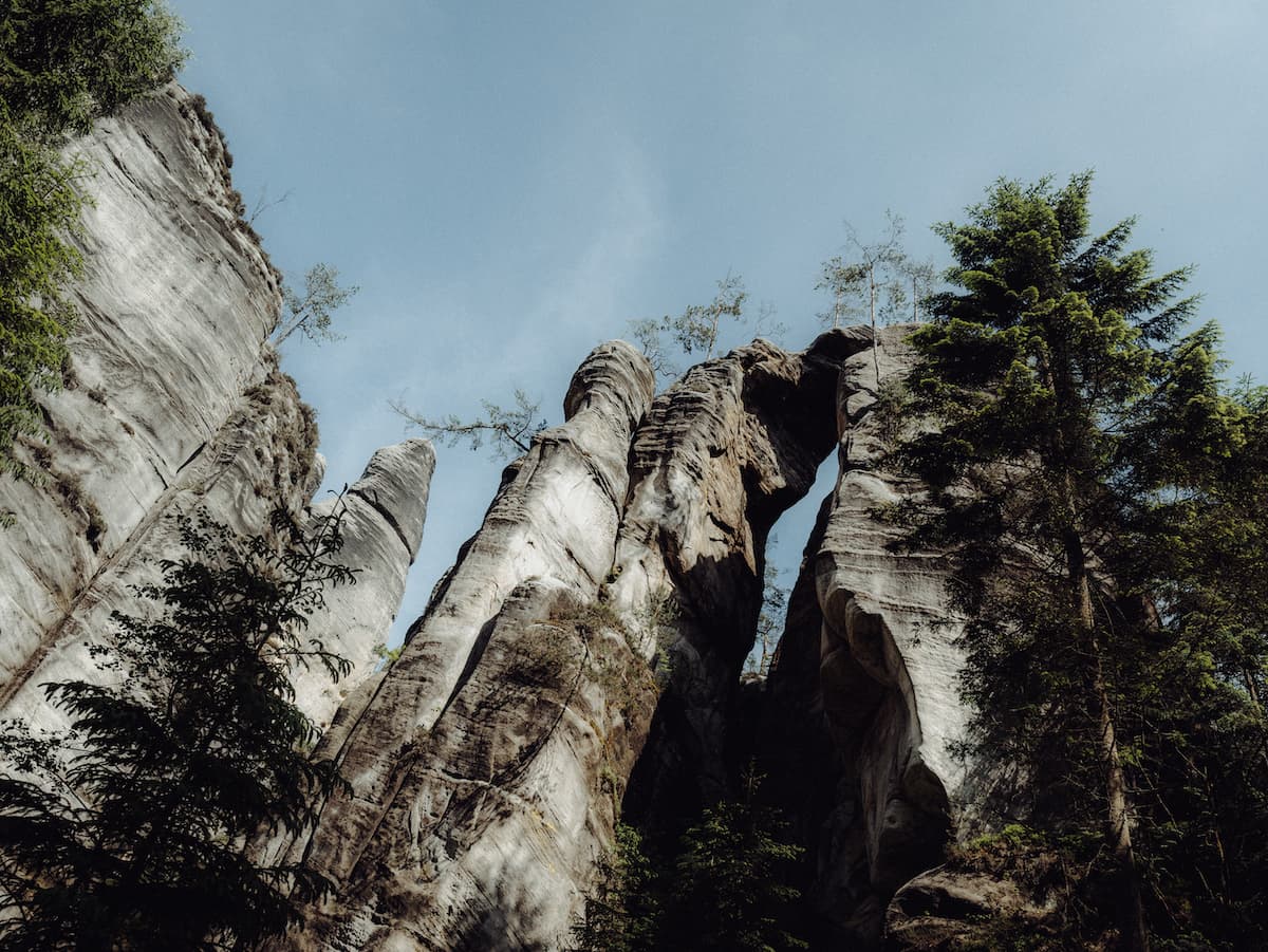 To miejsce to czeski klasyk – i nie bez powodu. Adršpach leży w Parku Narodowym i zachwyca od pierwszego kroku. Na wejściu wita nas szmaragdowe jeziorko, potem wędrujemy wśród tysięcy skalnych wież, z których najwyższa – Kochankowie (czes. Milenci) – ma ponad 80 metrów. Po drodze: wodospad, gotycka brama, Mysia Dziura (czyli szczelina szerokości 50 cm) i formacje skalne, które wyglądają jak postacie z legend.