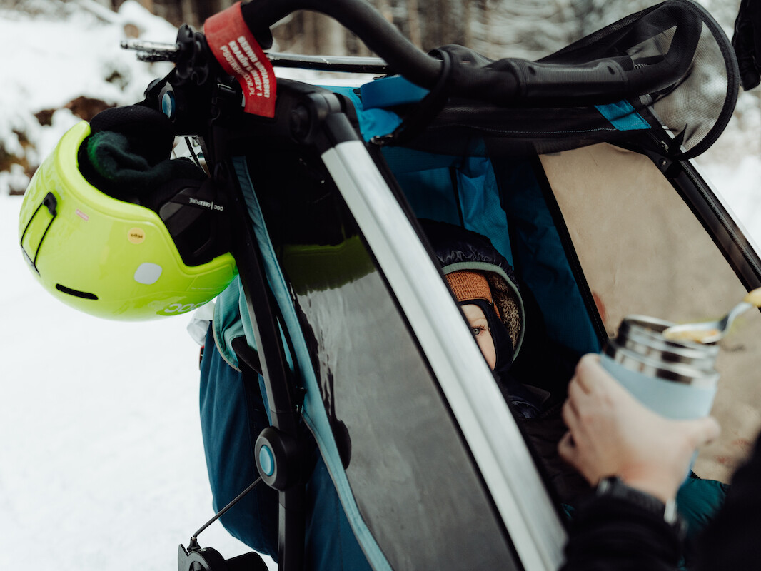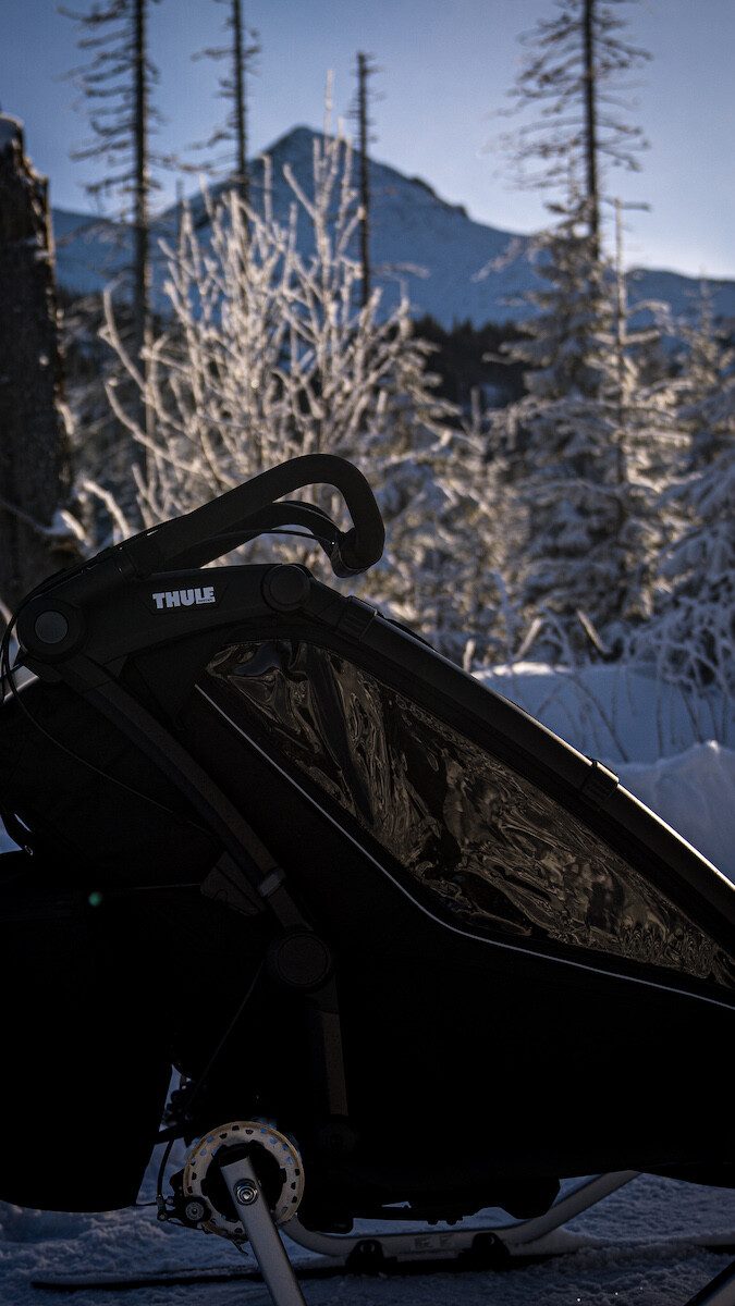 Od lat moim wiernym kompanem wypraw jest Thule Chariot Cross. To był strzał w dziesiątkę! Dzięki niej moje macierzyństwo jest pełne sportu i gór. W połączeniu z zestawem Thule Chariot Cross-Country Skiing Kit przyczepka sprawdziła się doskonale na zimowych szlakach. Jako że nie jestem przekonana do jazdy na nartach z dzieckiem w nosidle, wiem, że w przyczepce moje dzieci są bezpieczne. Bezpieczeństwo przede wszystkim! Przyczepka posiada 5-punktową uprząż, która idealnie utrzymuje dziecko nawet na wyboistych trasach. PS: Przyznaję się, zdarzyło mi się przewrócić przyczepkę raz na rowerze. Dobra zareagowała śmiechem i stwierdzeniem „aaa… bum”, więc naprawdę te pasy są bardzo dobre, ale oczywiście muszą być odpowiednio zapięte, nie mogą być luźne. Śpiworek Thule footmuff Sport zapewnia ciepło i komfort, otulając po sam czubek nosa małego dziecka. Nawet drzemka na mrozie będzie często gościć!